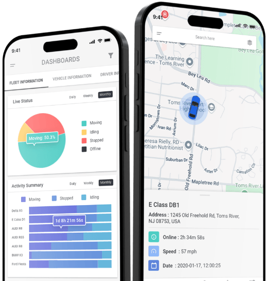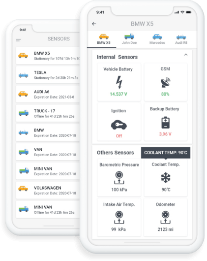 Similar to our web-based GPSLive v2 software, the dashboards are available on our smartphone APP to provide valuable information about your fleet, vehicles, drivers and sensors onboard your tracking devices. You can display your devices’ mileage, work hours, speeding, hours of operation and much more in a graphical format. Dashboards process the information collected by your tracking devices and present you with graphs that are essential in identifying unruly drivers or underperforming vehicles. You can check the status of your vehicles or view the sensor data for available parameters with just a few taps.